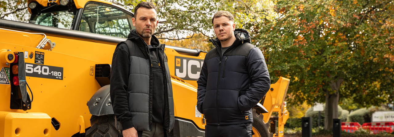 The query refers to the JCB Trade T-shirt, a specific style of workwear t-shirt. It is made of 100% cotton, features distressed JCB branding on the chest, a contrast collar and piping, and woven JCB...