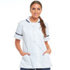 This bestselling white tunic has a smart trim. It also features an open-ended zip for improved infection control and is commonly worn by professionals within the medical, beauty and healthcare industry ranging from nurses to carers
